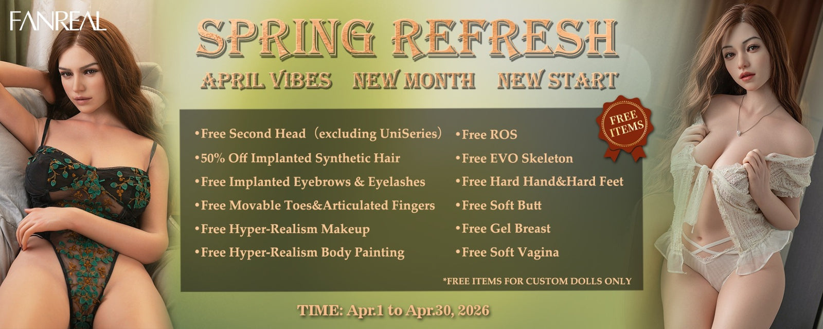 Siamo un distributore ufficiale per FanReal Doll nei paesi nordici e possiamo offrire ai nostri clienti tutte le bambole della gamma FanReal!
